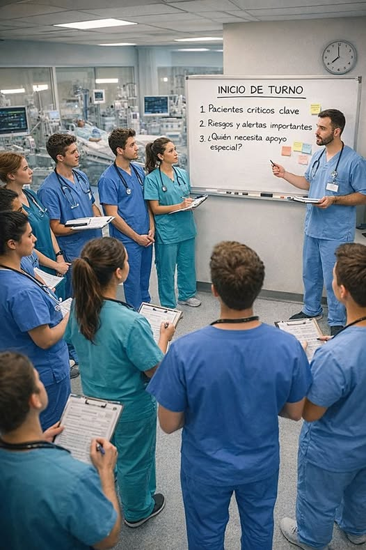 • Inicio de turno (3 min): “Pacientes críticos + riesgos + quién necesita apoyo”.