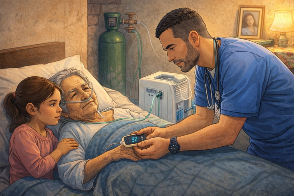 La cama de la abuelita ya no era solo cama; era estación de batalla. Había un tanque verde a un lado. Del tanque salía un tubo hacia su nariz. Laura lo miraba como se mira algo sagrado: porque cuando el tubito estaba puesto, la abuelita parecía aliviarse, como si el mundo volviera a tener un ritmo respirable.