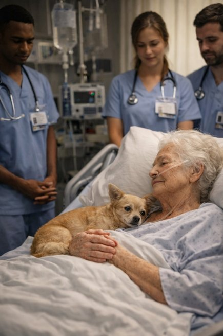 Luna era una perrita pequeña, de pelaje canela y ojos atentos, de esas que parecen entender más de lo que jamás podrían decir. Llegó al hospital envuelta en una manta azul el mismo día que su dueña, Carmen, ingresó por una reagudización más de su enfermedad pulmonar crónica. Nadie imaginó entonces que ese ingreso se prolongaría durante meses… ni que Luna se convertiría en parte silenciosa del equipo.
